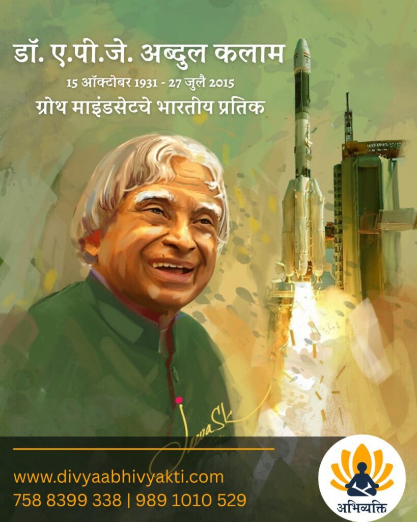 भारतीय इतिहासातील एक प्रेरणादायी व्यक्तिमत्त्व म्हणून डॉ. ए.पी.जे. अब्दुल कलाम यांची ओळख आजही प्रत्येक भारतीयाच्या मनात ठसठशीत आहे. शास्त्रज्ञ, शिक्षक, लेखक आणि देशाचे माजी राष्ट्रपती या अनेक भूमिकांमध्ये त्यांनी अविस्मरणीय योगदान दिले. त्यांच्या संपूर्ण जीवनप्रवासात “Growth Mindset” किंवा “विकसनशील विचारप्रणाली”ची साक्ष आढळते.