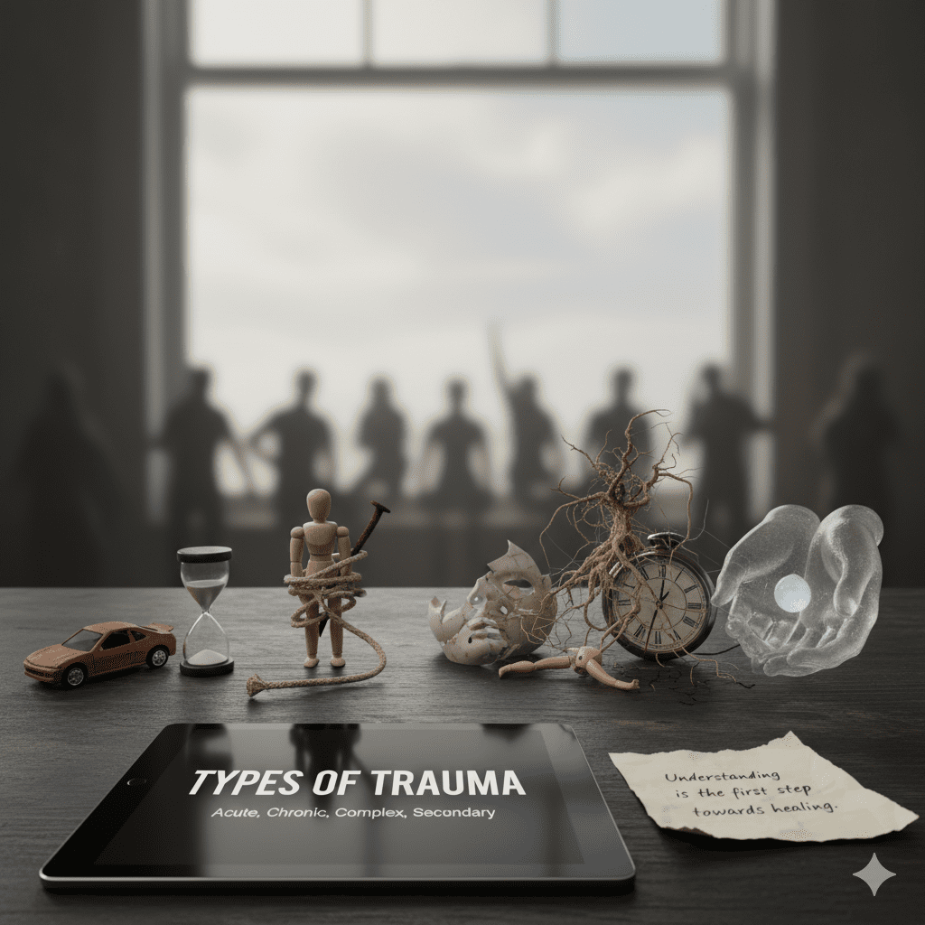 मागील लेखात आपण पाहिलं की ट्रॉमा ही केवळ घटना नसून त्या घटनेवरची व्यक्तीची भावनिक प्रतिक्रिया असते. प्रत्येक दुःखद अनुभव ट्रॉमा ठरत नाही, पण काही अनुभव इतके तीव्र असतात की ते दीर्घकाळ परिणाम करतात. मानसशास्त्रात ट्रॉमा चे वेगवेगळे प्रकार सांगितले आहेत. या लेखात आपण त्याच प्रकारांचा आढावा घेऊ.