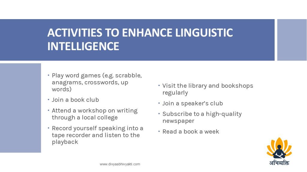 Language Smart, also known as Linguistic Intelligence, is one of the multiple intelligences proposed by psychologist Howard Gardner in his theory of multiple intelligences.